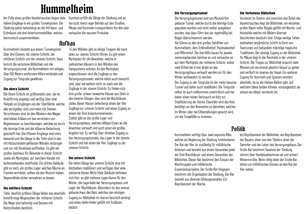 Zusätzlich gibt es ein kleines Abenteur welches im Zusammenhang zu Hummelheim steht und dazu dient, das die Spieler sich das Vertrauen der Hummelwächter erarbeiten können.